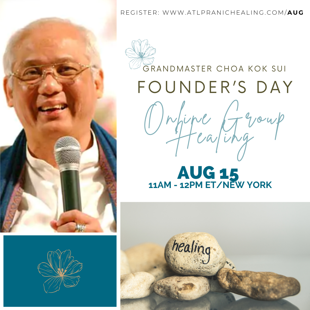 August 15 is Founder’s Day, GrandMaster Choa Kok Sui’s birthday. In honor of Master Choa’s priceless synthesis and energetic technology of Modern Pranic Healing and Arhatic Yoga, Judy Yi would like to offer a healing session. The session will focus on removing blockages of negative emotions, thoughts and whatever is guided for the group.